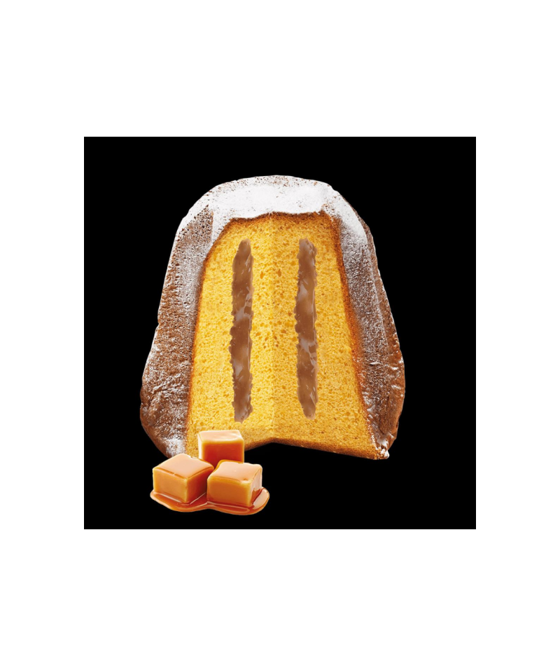 O Pandoro artesanal com caramelo salgado é uma sobremesa original e exclusiva que surpreende pelo equilíbrio perfeito entre o doce e o salgado. O encontro entre a massa macia, rica em manteiga e baunilha Mananara natural de Madagascar* (*Slow Food Presidium), e o abundante recheio de creme de caramelo salgado, é puro prazer para os paladares mais gulosos e refinados. A fermentação é natural, a partir de uma massa fermentada passamos 72 horas de trabalho artesanal. O resultado é uma sobremesa altamente digerível e macia, com aroma e sabor genuínos e inconfundíveis. Os ingredientes básicos são todos frescos: ovos do campo da Itália, leite, natas e manteiga da montanha.